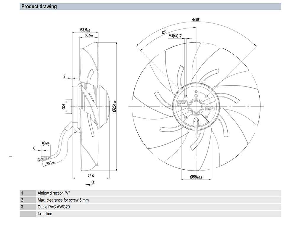 A2E250-AL06-73 ebmpapst Specification drawing: