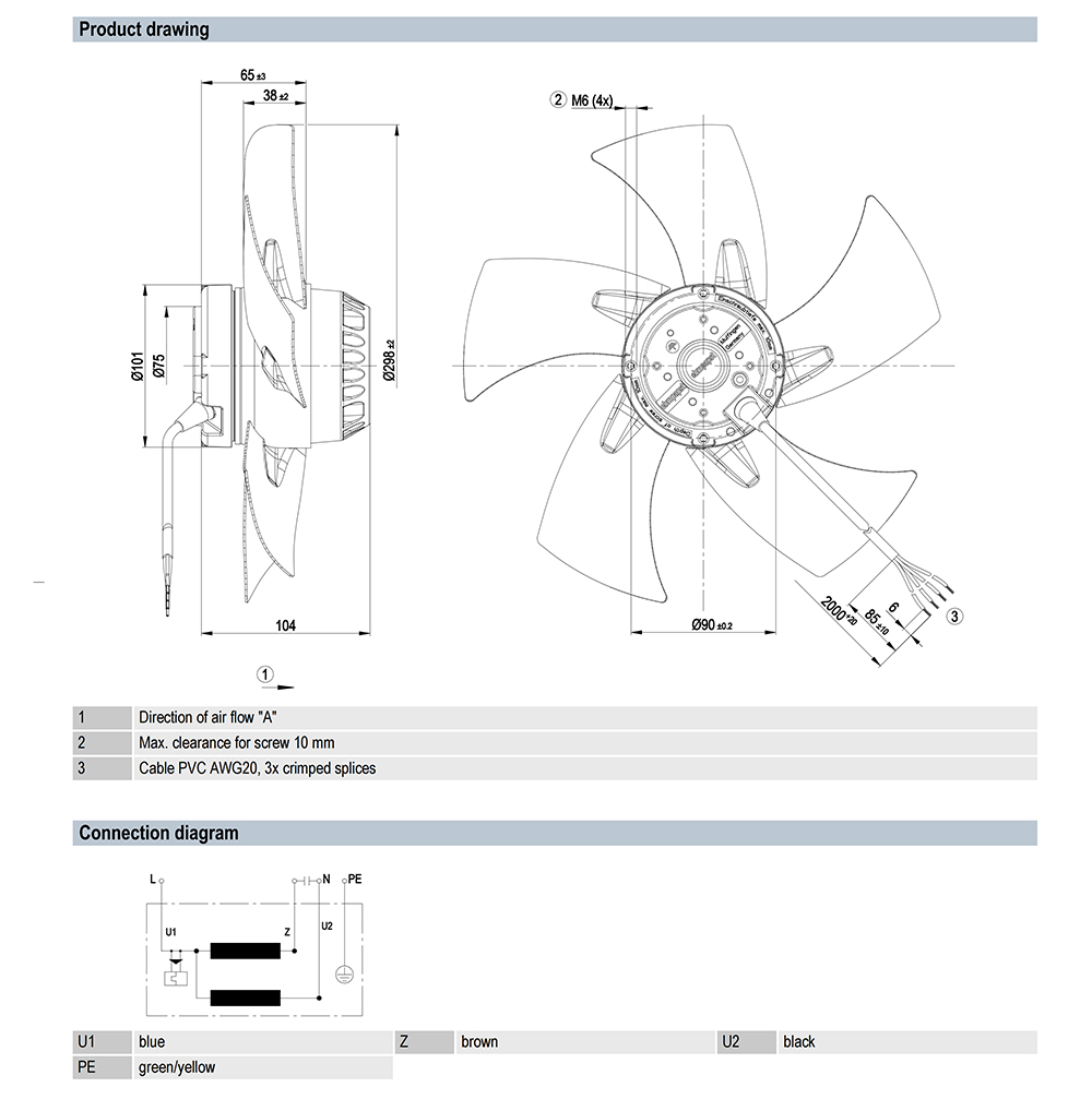 A2E300-AP02-11 Ebm-papst Specification drawing: