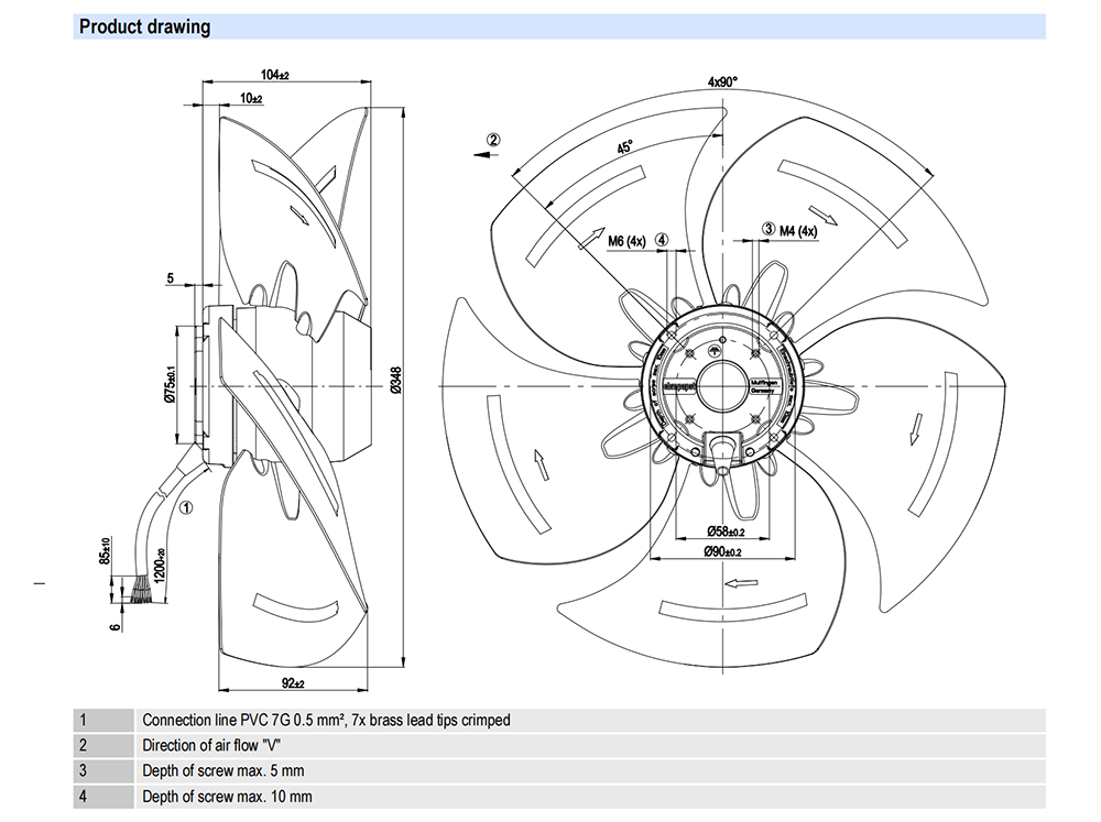 A4D350-AP08-16 ebmpapst Specification drawing: