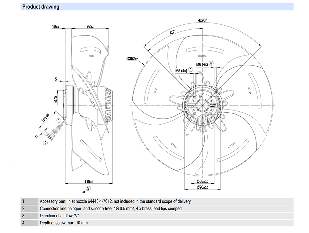 A4E350-AQ02-12 Ebmpapst Specification Drawing: