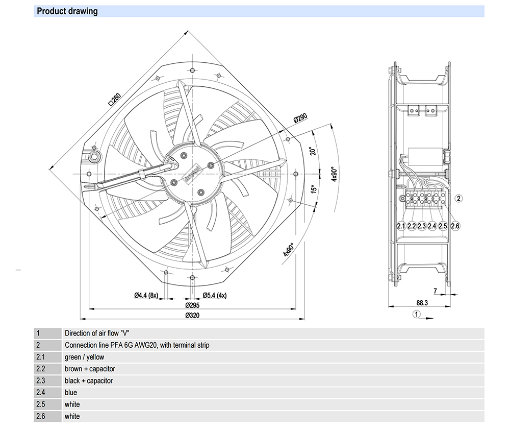 W2E250-HL06-21 ebmpapst Specification drawing: