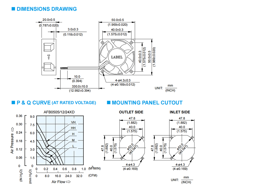 AFB0512HD Delta Specification drawing: