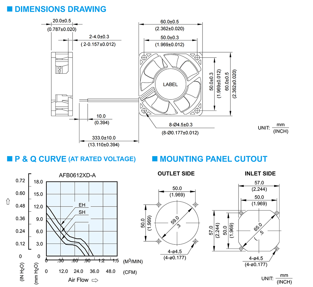AFB0612EHD Delta Specification drawing: