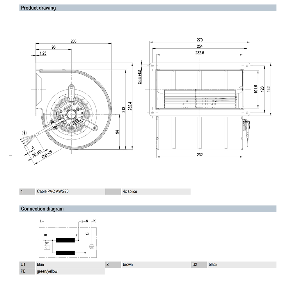 Ebmpapst AC Centrifugal Fan Features: