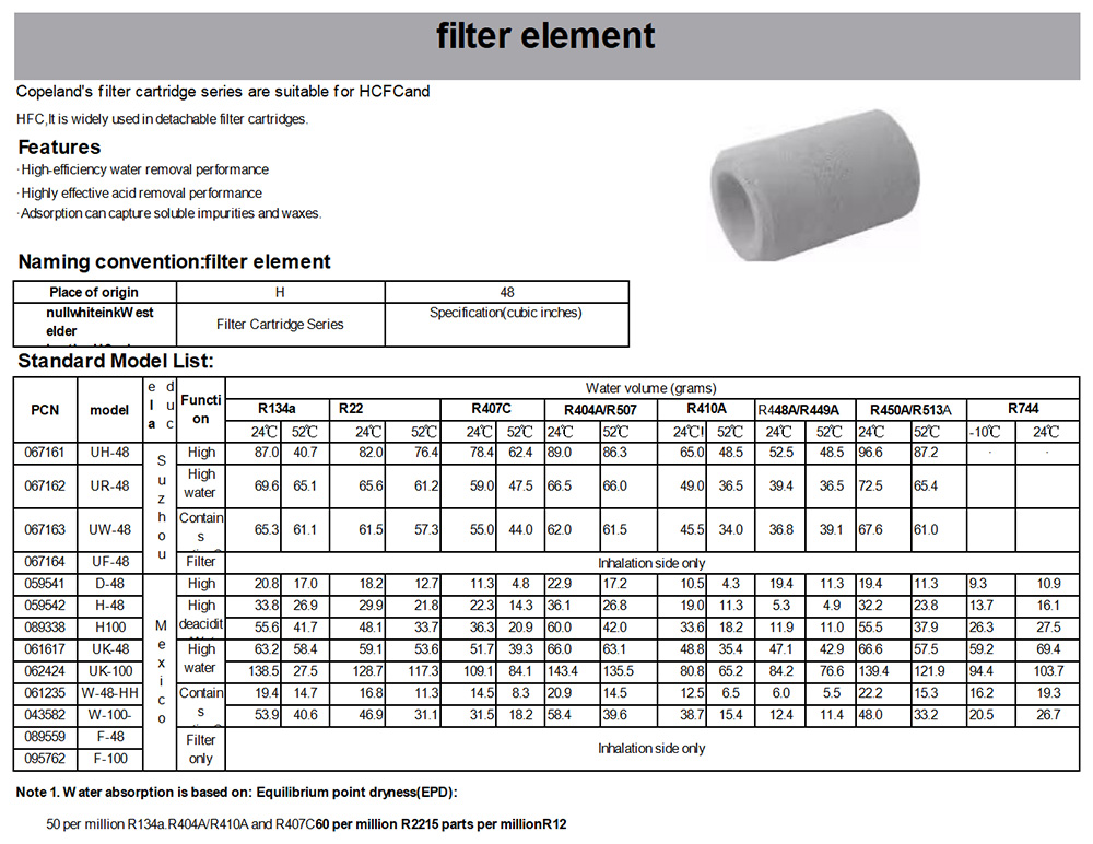 Emerson Dryer Filter Cartridge D-48 Filter Canister H48/W-48 High Acid Removal H100/UK/F48