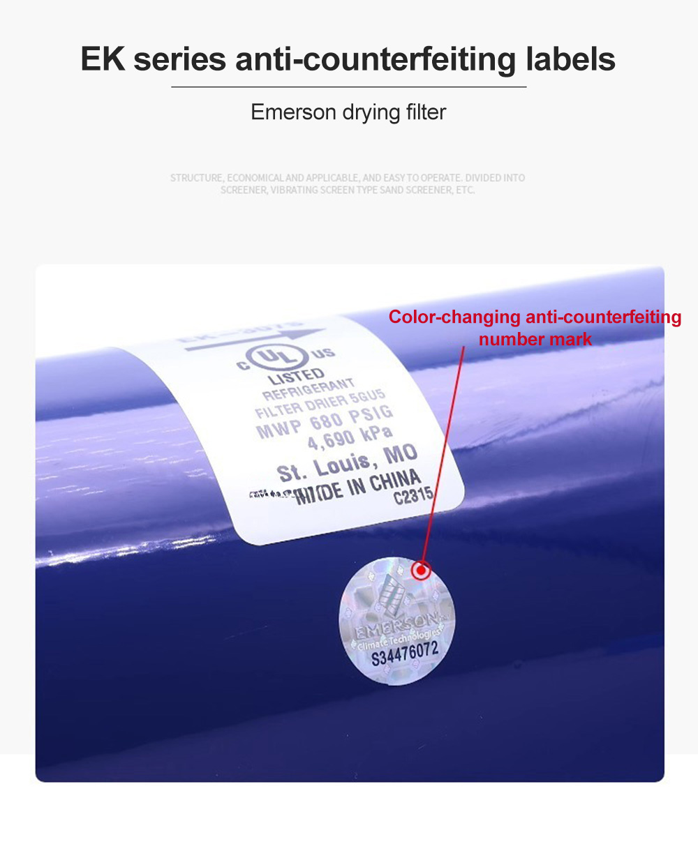 Emerson Dryer Filter EK-052 083S 164S 165S 167S 305S 306S 415 417