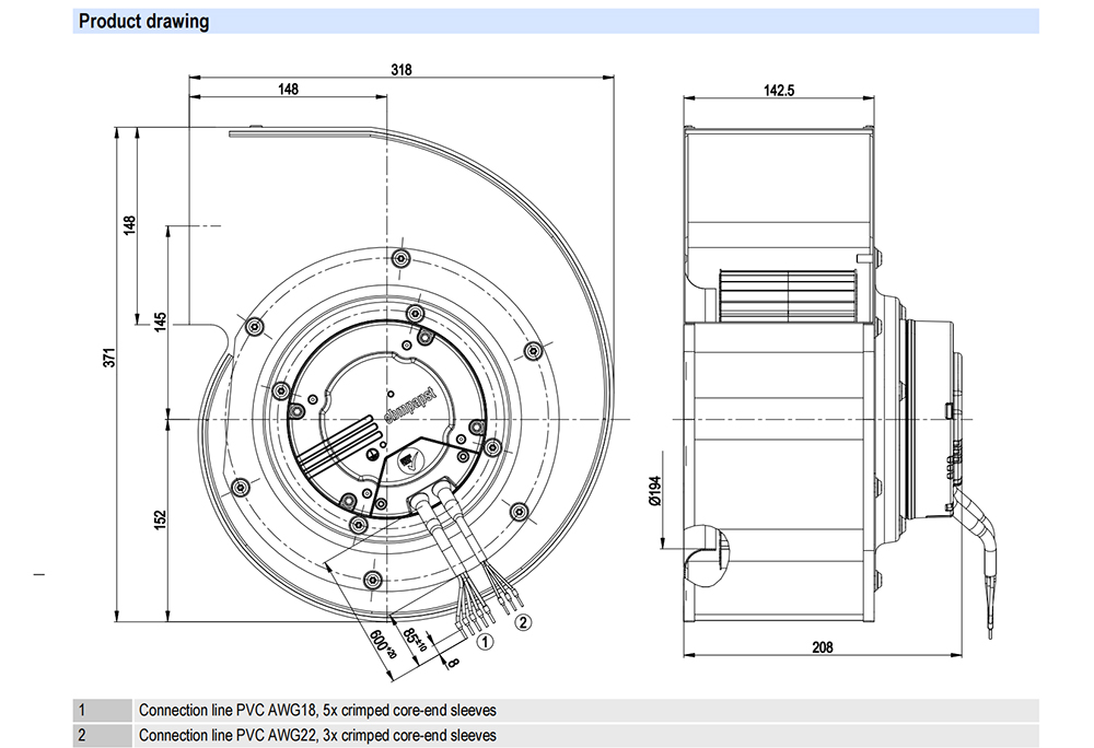 G3G225-AD29-71 ebmpapst Specification drawing: