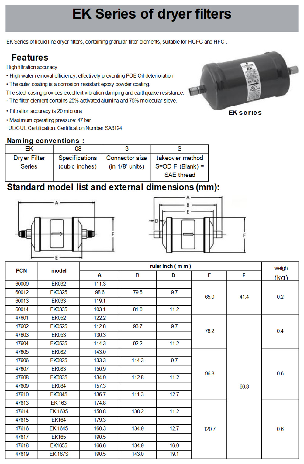 Genuine Emerson EK-052 Dryer Filter for Air Conditioning and Cold Storage (Threaded Connection) EK052