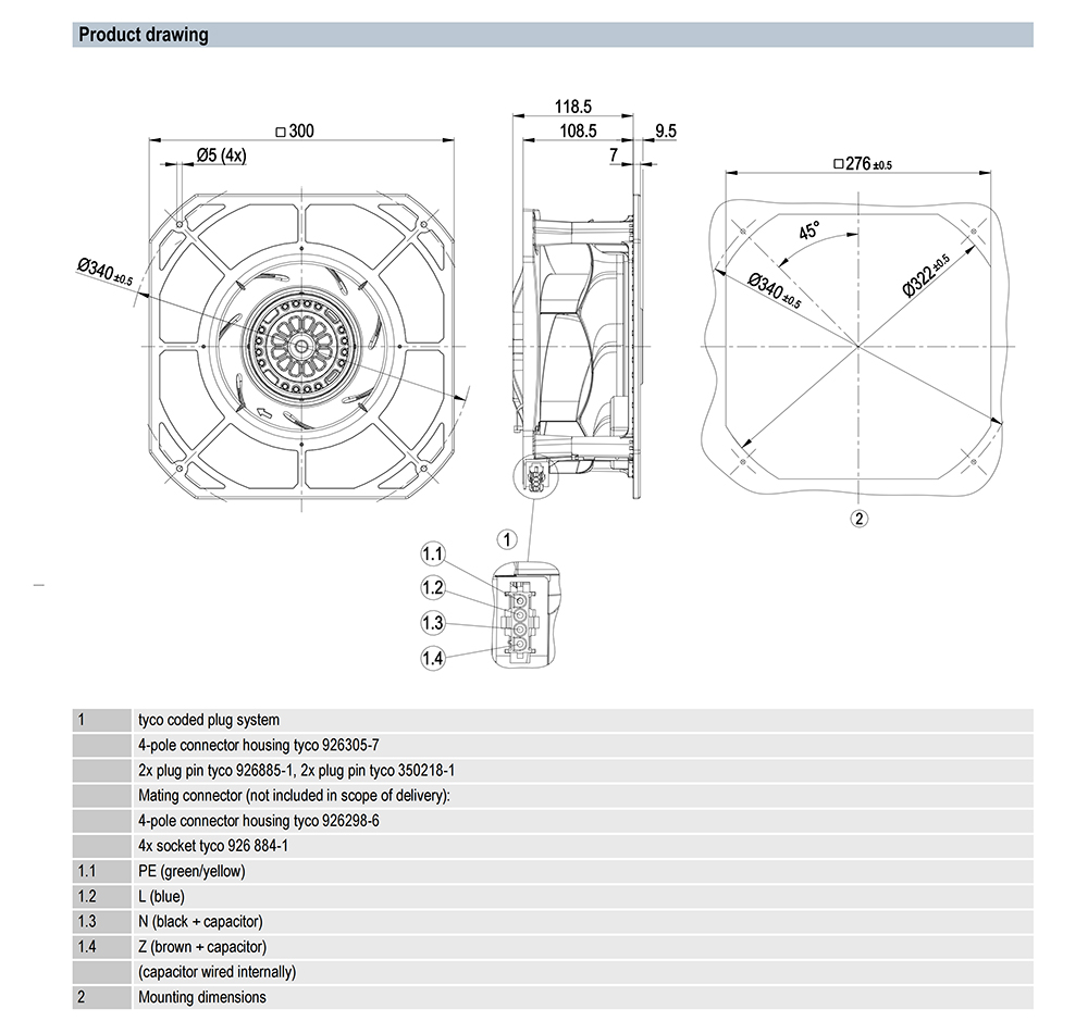 K2E250-RB06-13 Ebmpapst Specification Drawing: