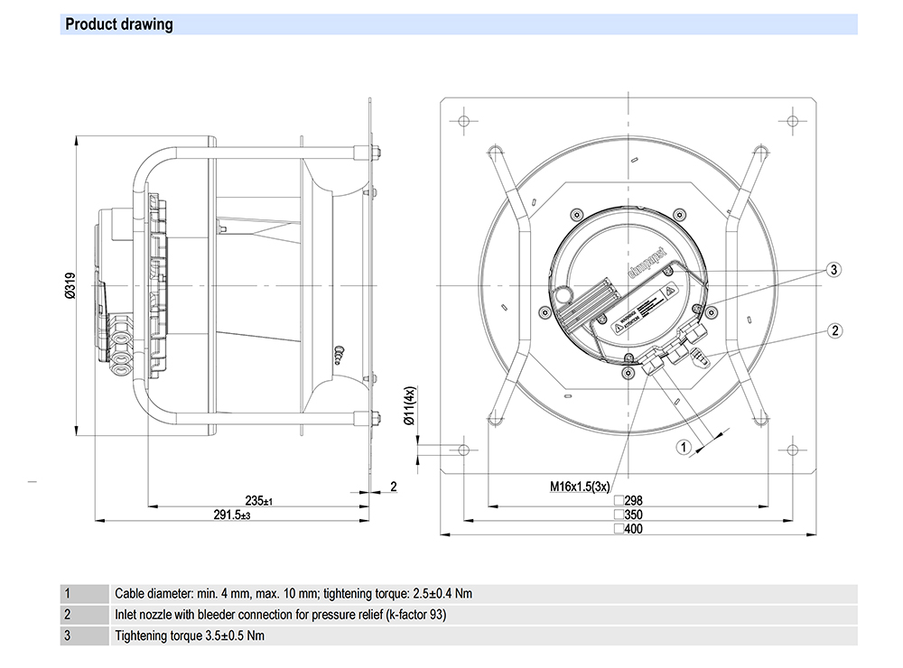 K3G280-AU06-B2 Ebm-papst Specification Drawing:
