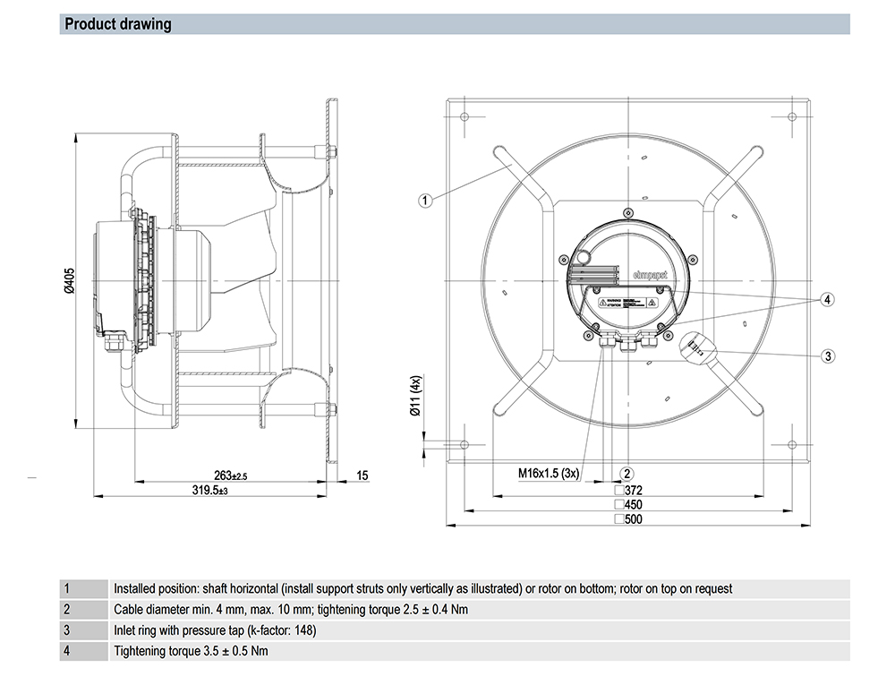 K3G355-AX56-90 Ebm-papst Specification Drawing: