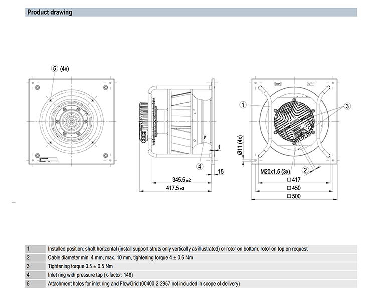 K3G355-PI93-02 Ebm-papst Specification drawing: