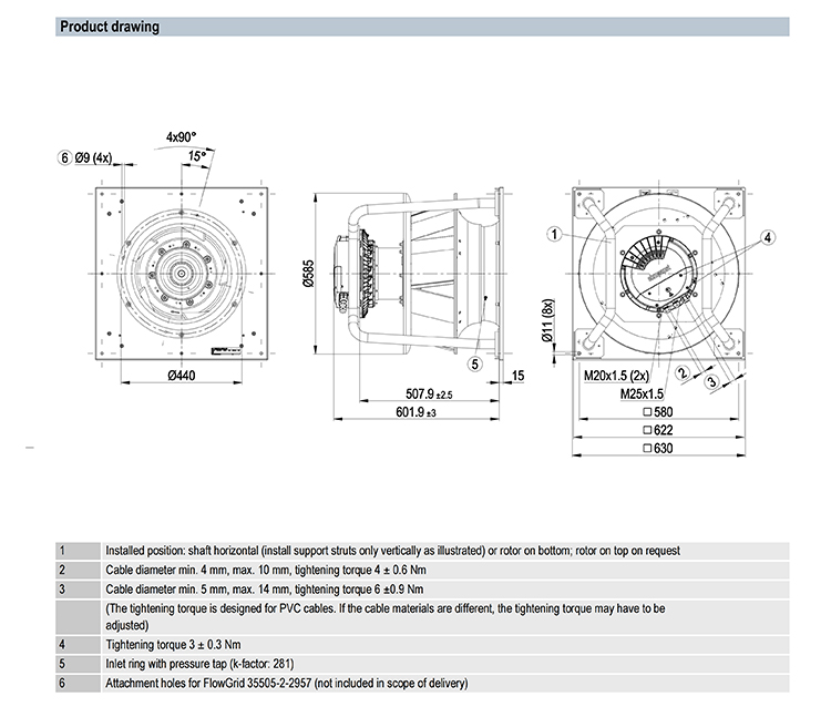 K3G500-PC16-L1 Ebm-papst Specification drawing: