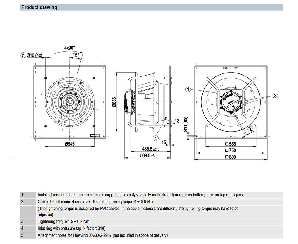 K3G560-PB31-61 Ebm-papst Specification drawing: