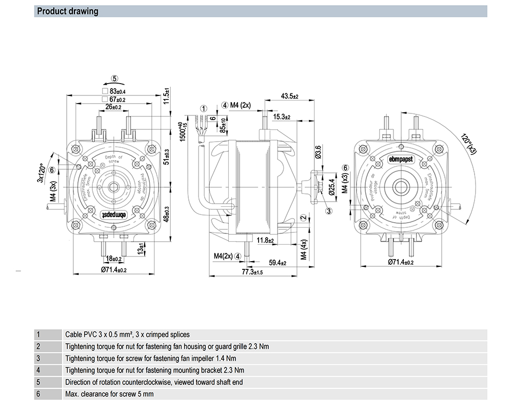 M4Q045-DA01-75 Ebm-papst Specification drawing: