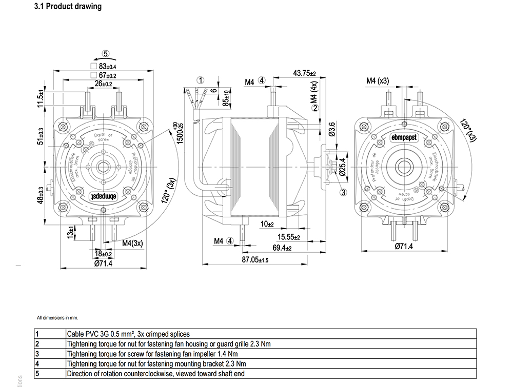 M4Q045-EA01-75 Ebm-papst Specification Drawing: