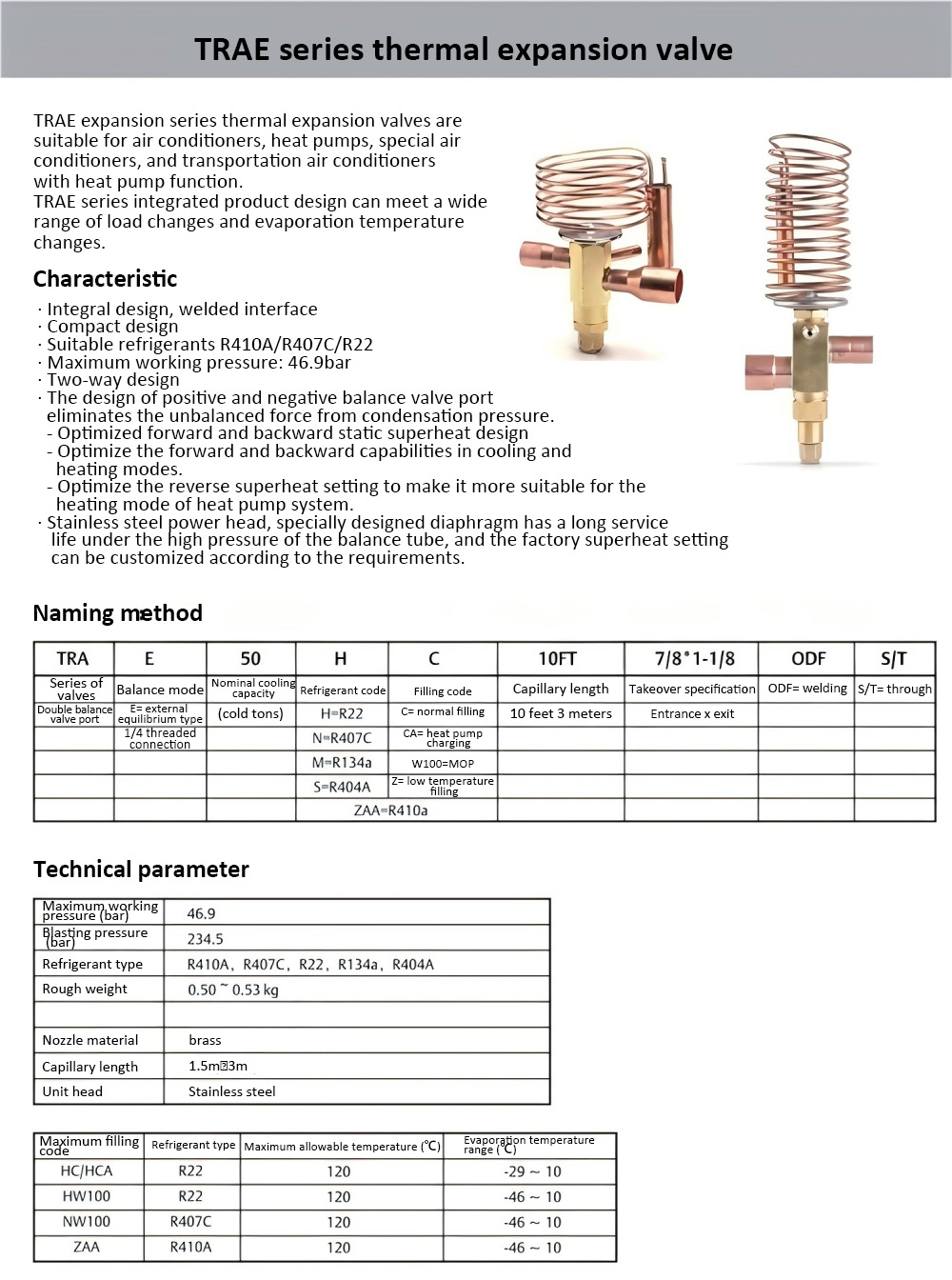 Original Emerson thermostatic expansion valve TRAE-8-10-12-15HCA for air conditioning heat pumps (two-way, R22)