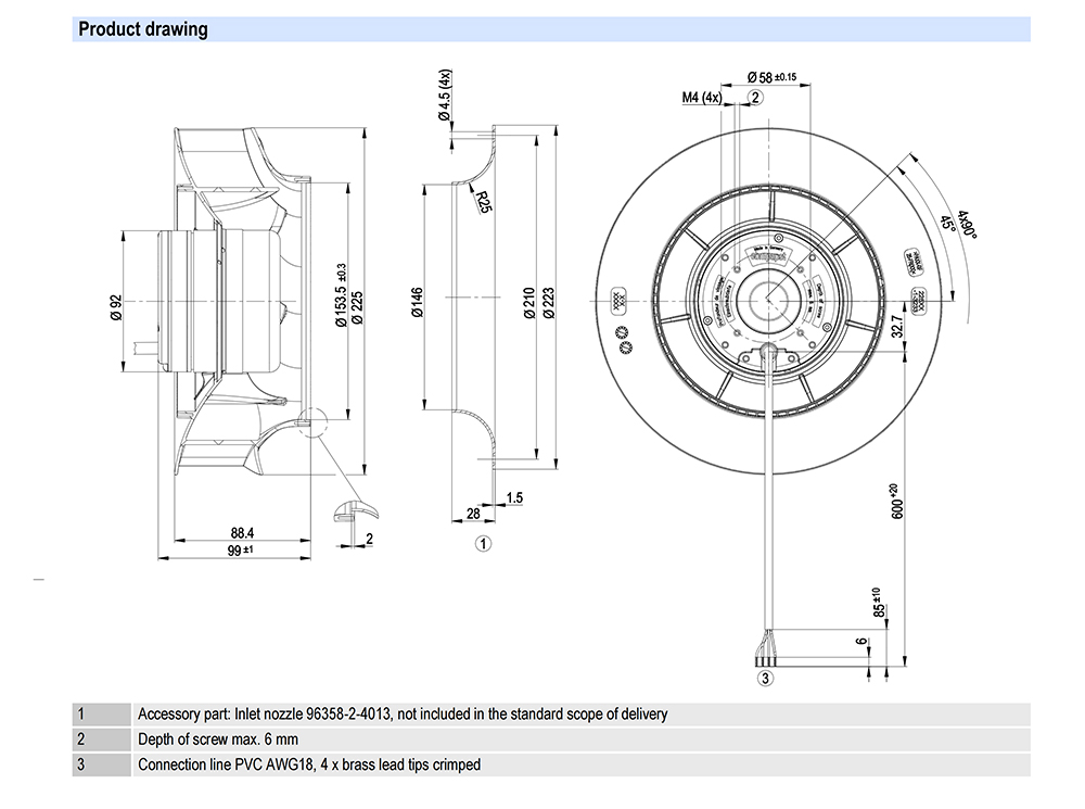 R1G225-RA15-10/A03 Ebm-papst Specification Drawing: