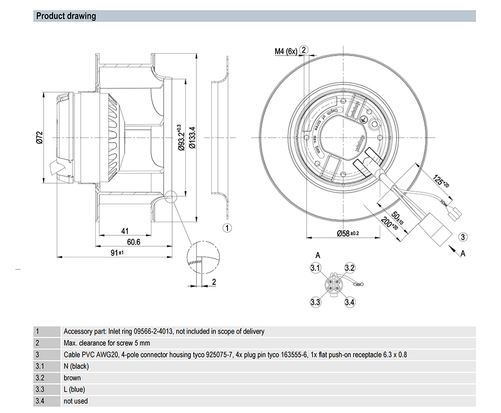 R2E133-BH66-31 Ebm-papst Specification drawing: