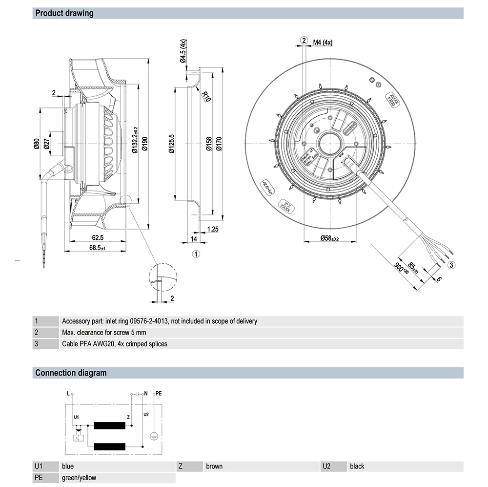 R2E190-RA26-53 Ebm-papst Specification drawing: