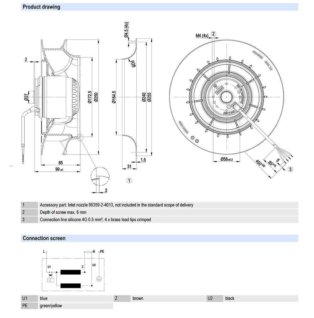 R2E250-RA50-01/G02 Ebm-papst Specification Drawing: