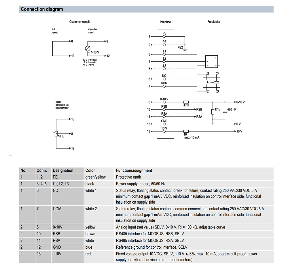 It supports multiple speed control methods such as 0-10V, PWM, and RS485 (MODBUS).