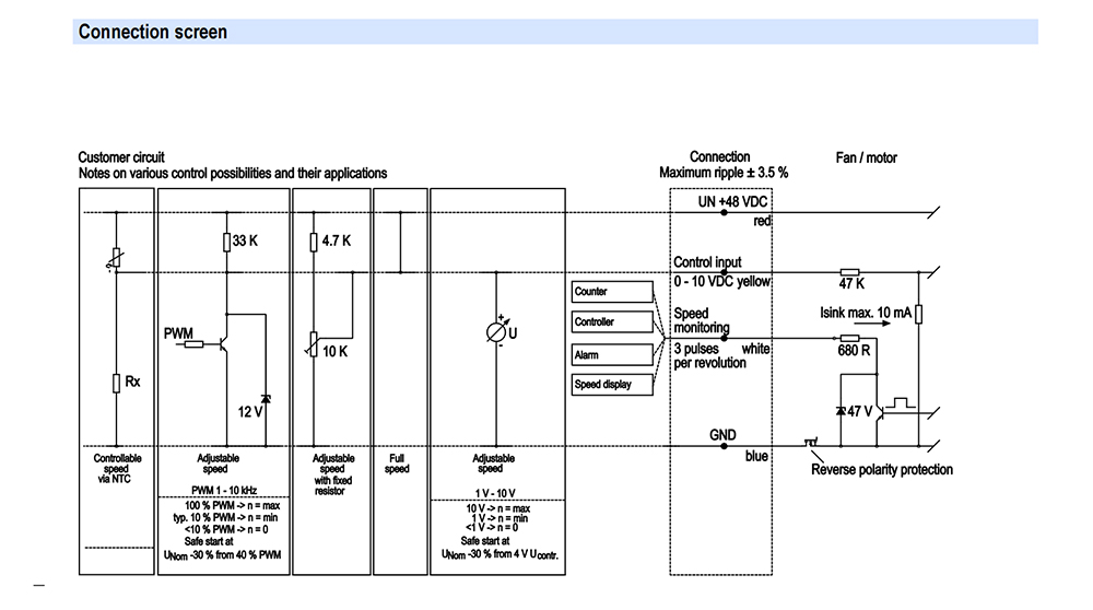 It supports multiple speed control methods such as 0-10V, PWM, and RS485 (MODBUS).