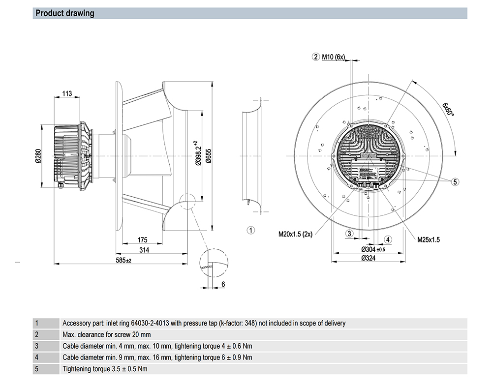 R3G560-PC04-01 Ebm-papst Specification drawing: