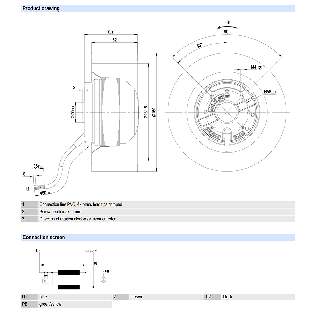 R4E160-AB01-01 Ebm-papst Specification drawing: