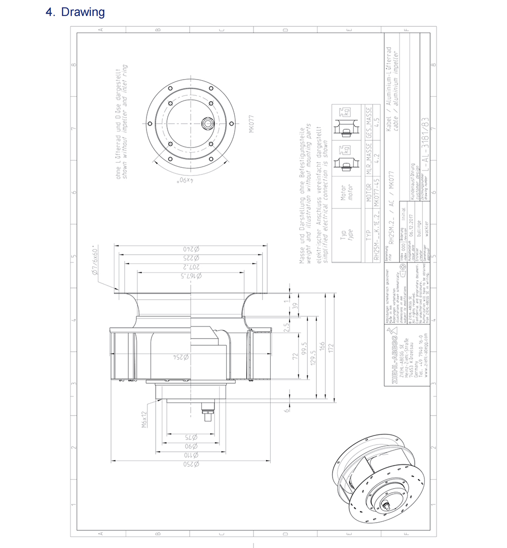 RH25M-2DK.1E.2R 170155 Ziehl-abegg Specification drawing: