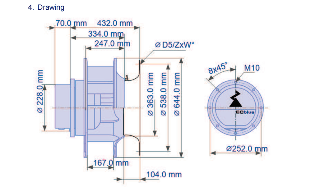 RH56C-ZID.GL.CR 116161 Ziehl-abegg Specification drawing: