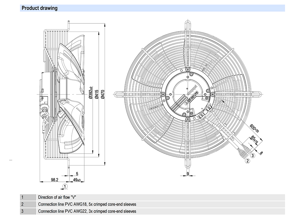 S3G400-LC22-51 Ebm-papst Specification drawing: