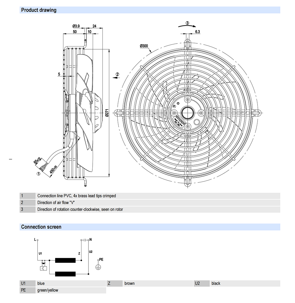 S4E250-AH02-01 Ebm-papst Specification drawing: