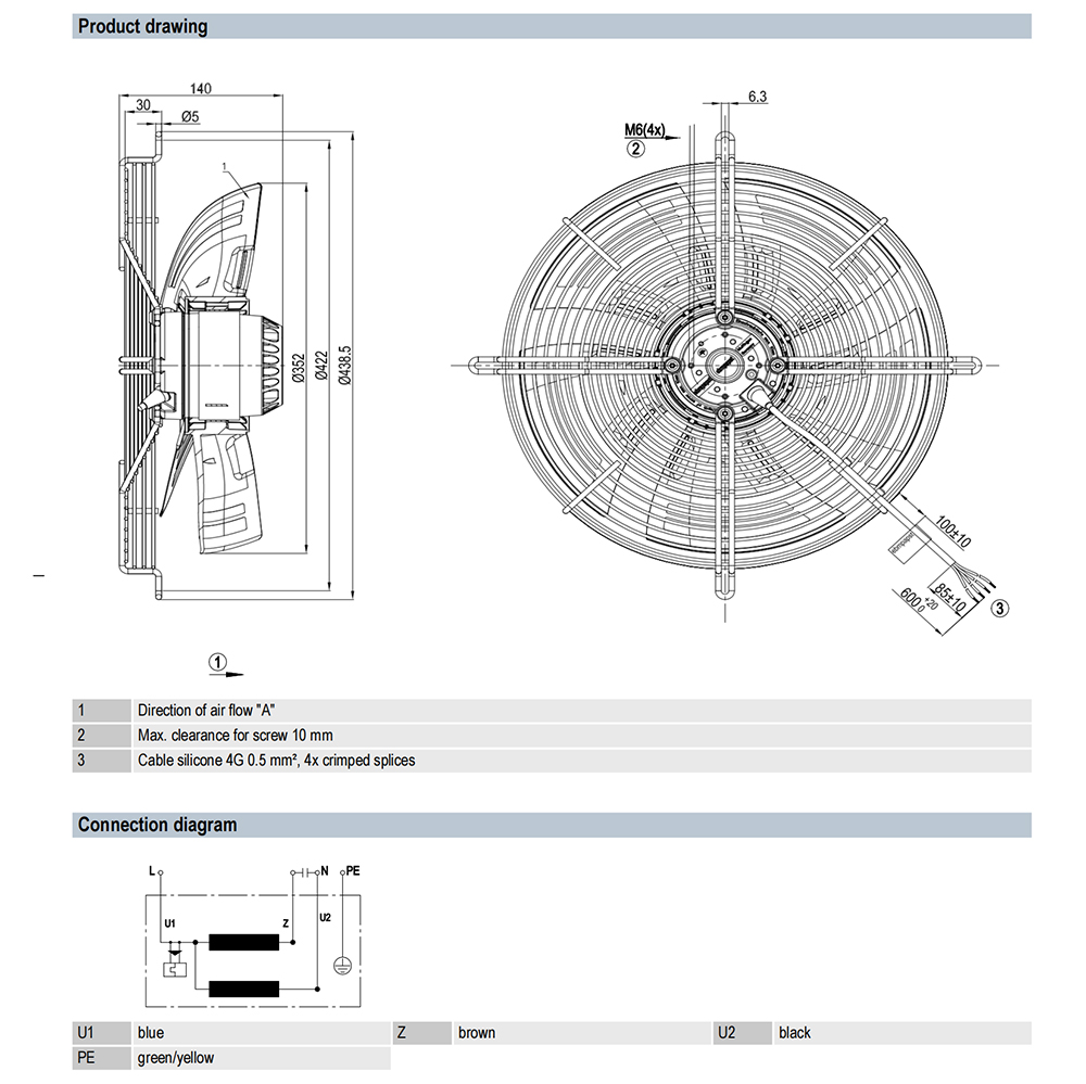 S4E350-BN02-02/F01 Ebm-papst Specification drawing: