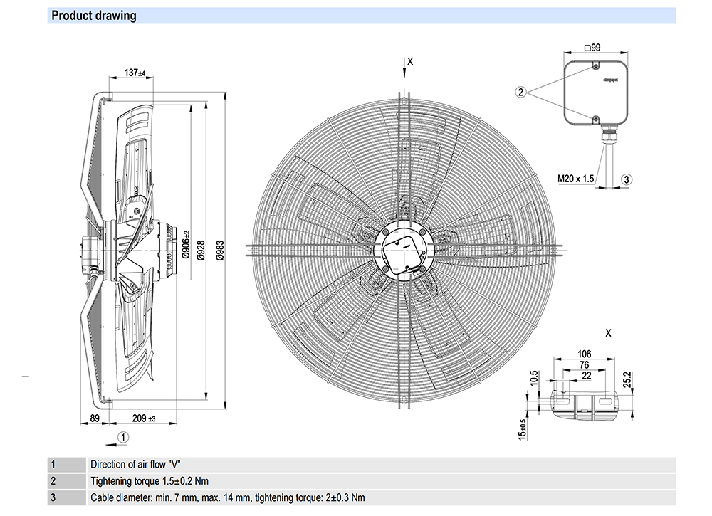 S6D910-CA01-01 Ebm-papst Specification drawing:
