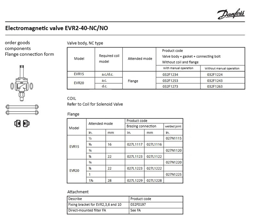 Danfoss Solenoid Valve EVR15-032L1228/1225/1227/8101/1299/3270