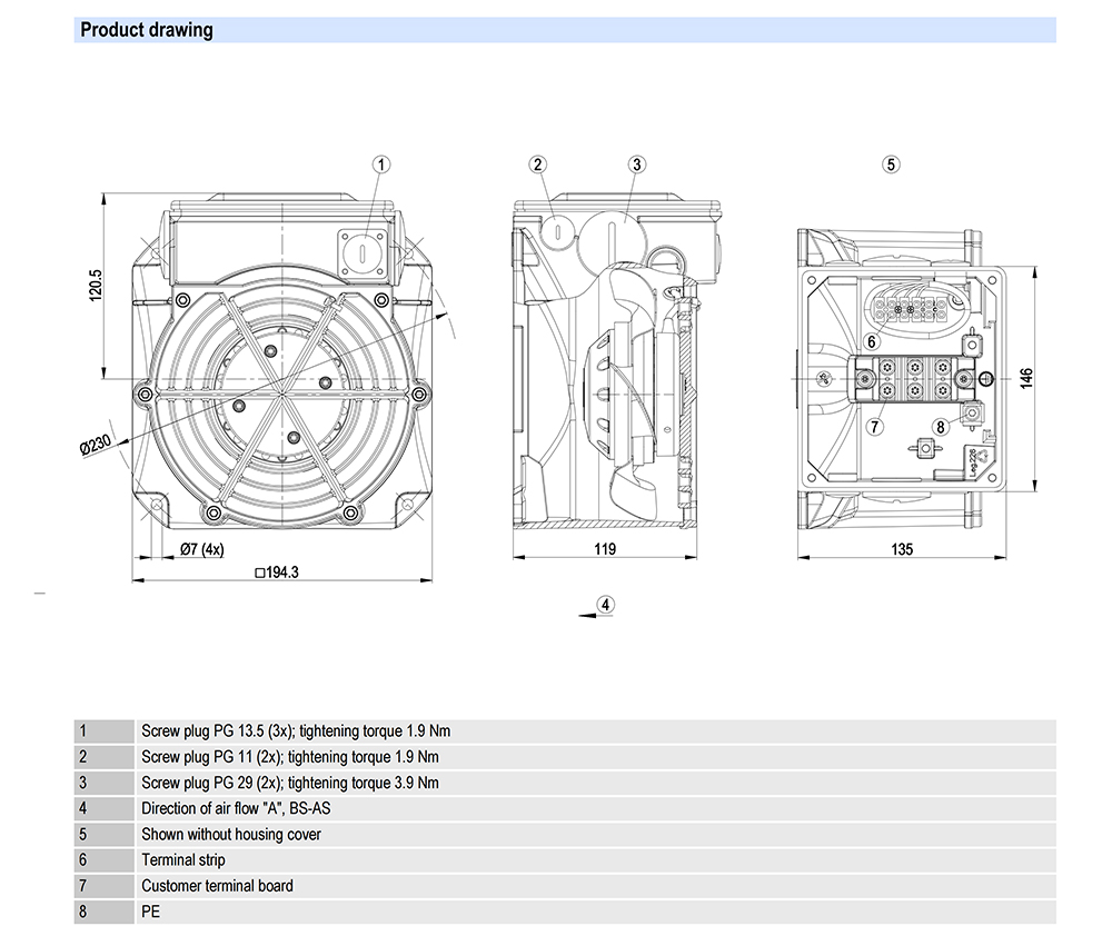 W2D160-EA22-21 Ebm-papst Specification drawing: