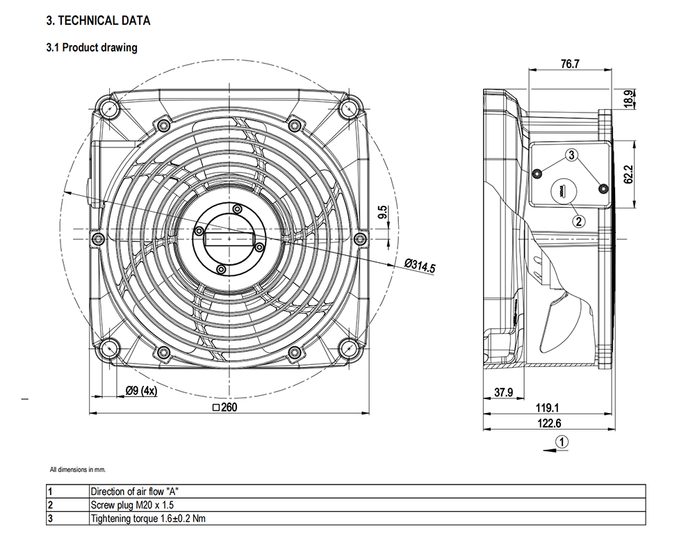 W2D225-EA18-15 Ebm-papst Specification drawing:
