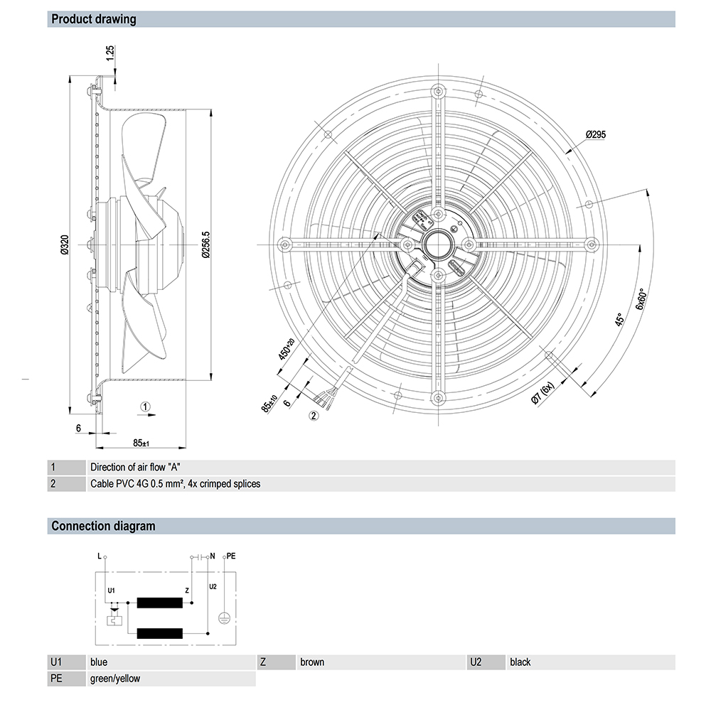 W2E250-CE65-02 Ebm-papst Specification drawing: