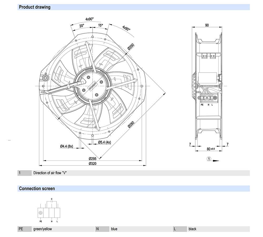 W2E250-HQ52-11 Ebm-papst Specification Drawing: