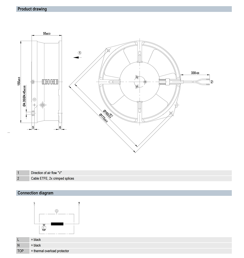 W2S130-AB03-11 Ebm-papst Specification drawing: