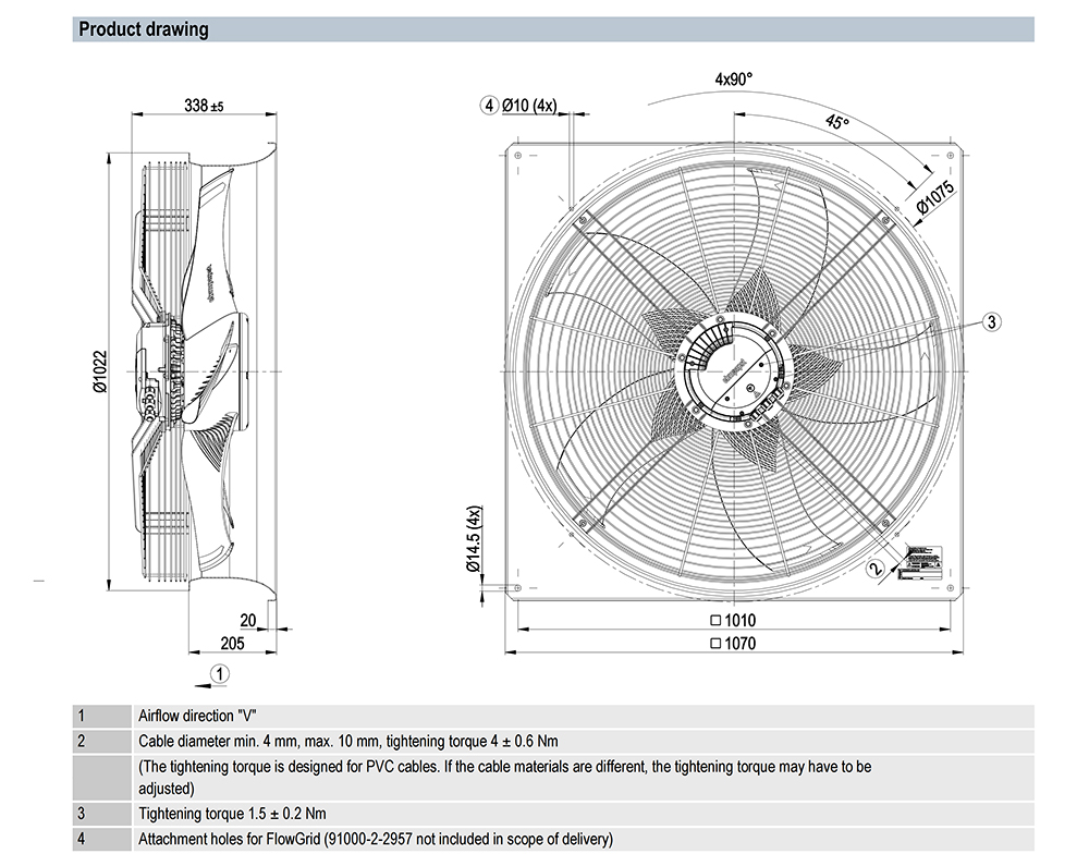 W3G910-KU25-03 ebmpapst Specification drawing: