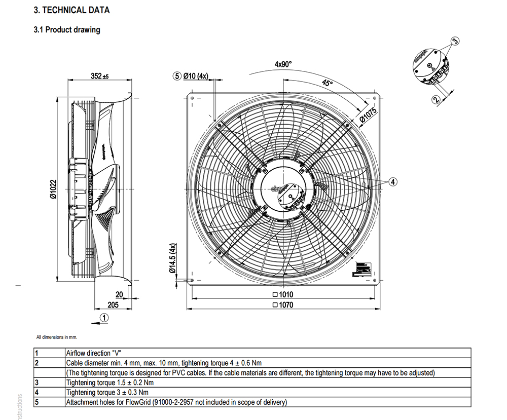 W3G910-LU25-03/F01 Ebm-papst Specification drawing: