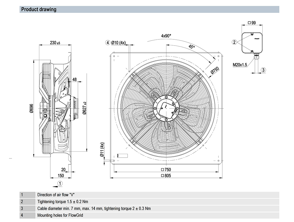 W4D630-GF03-03/F01 Ebmpapst Specification Drawing: