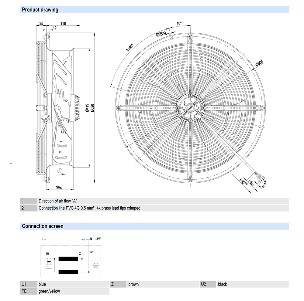 W4E400-CP02-31 Ebm-papst Specification drawing: