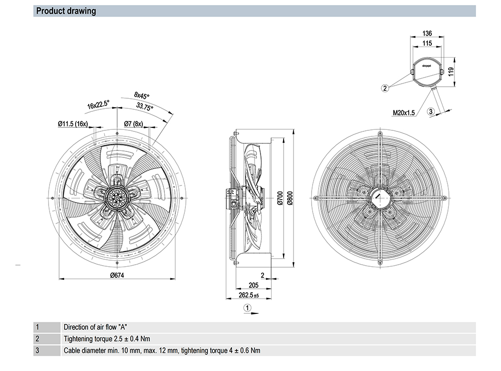 W6E630-CO01-80 Ebm-papst Specification drawing: