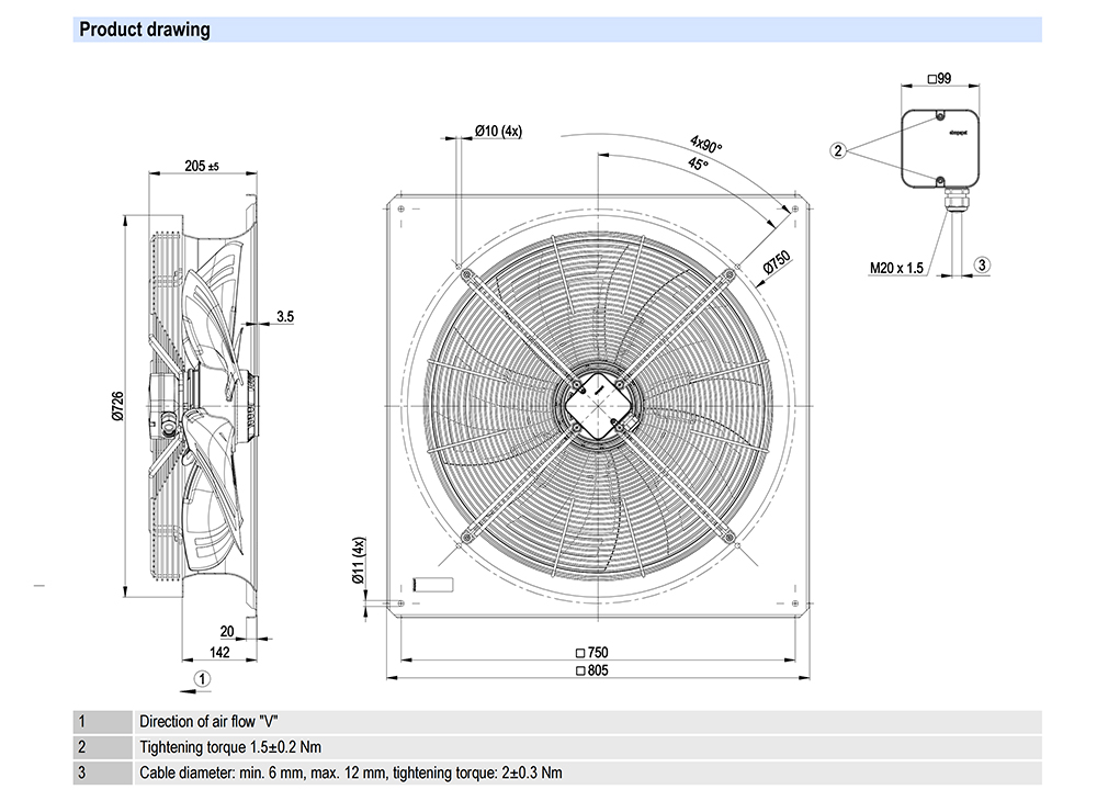 W8D630-GN01-01 Ebm-papst Specification drawing:
